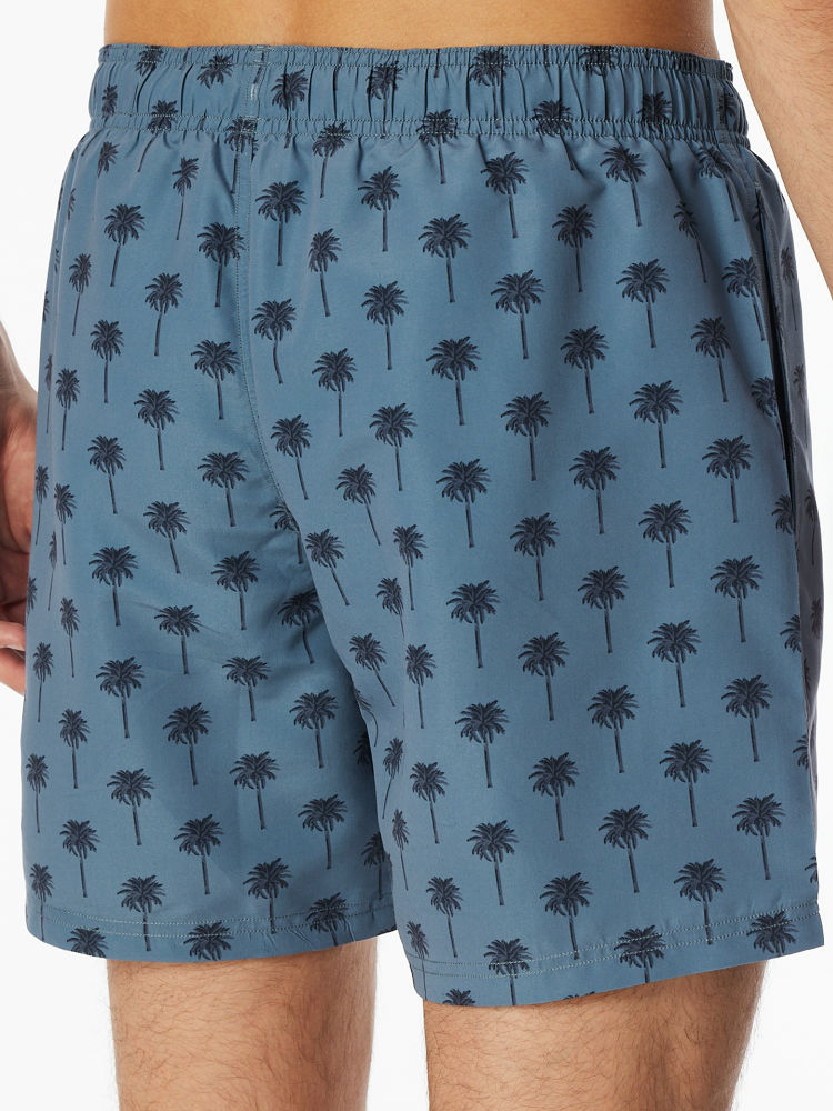Schiesser Zwemshort in blauw met palmboom print voorzien van steekzakken, koordsluiting en binnenbroek