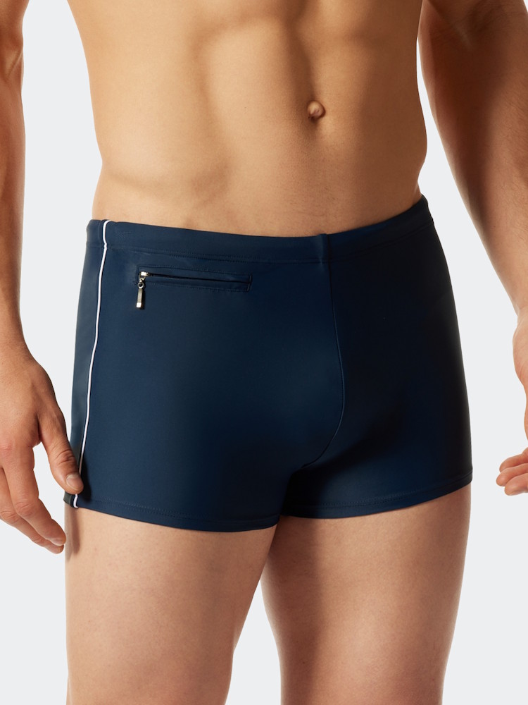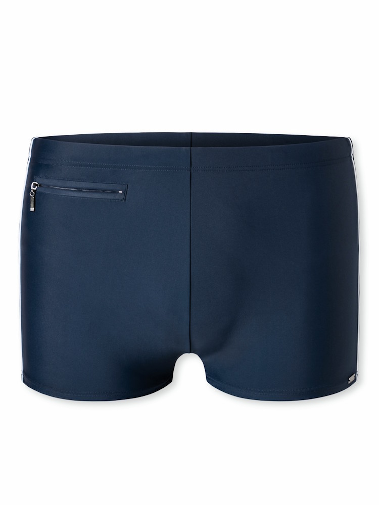 De Schiesser Swimshorts Swim Trunk 172773801 Admiral combineert op eenvoudige wijze comfort met een klassieke en stijlvolle look. Maak kennis met deze korte strakke donkerblauwe zwemboxer met zakje met ritsluiting. Stijlvol, tijdloos, met een knipoog naar het verleden.