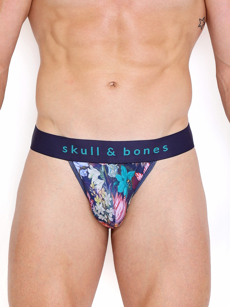 Skull & Bones New Hand Painted Floral Bouquet Thong herenstring met schilderachtige print