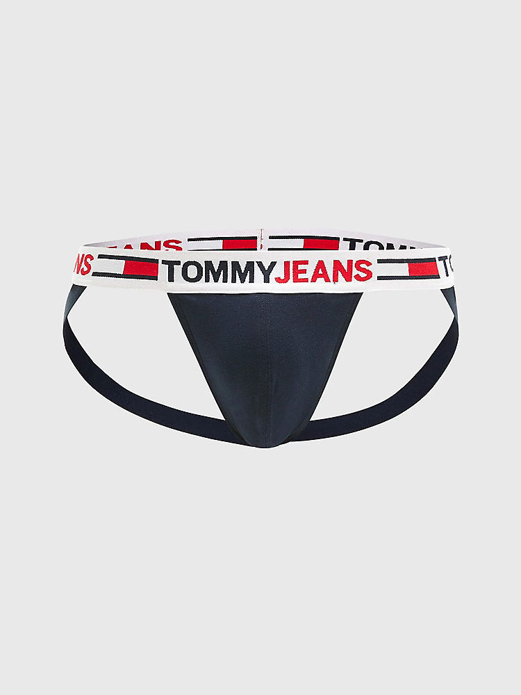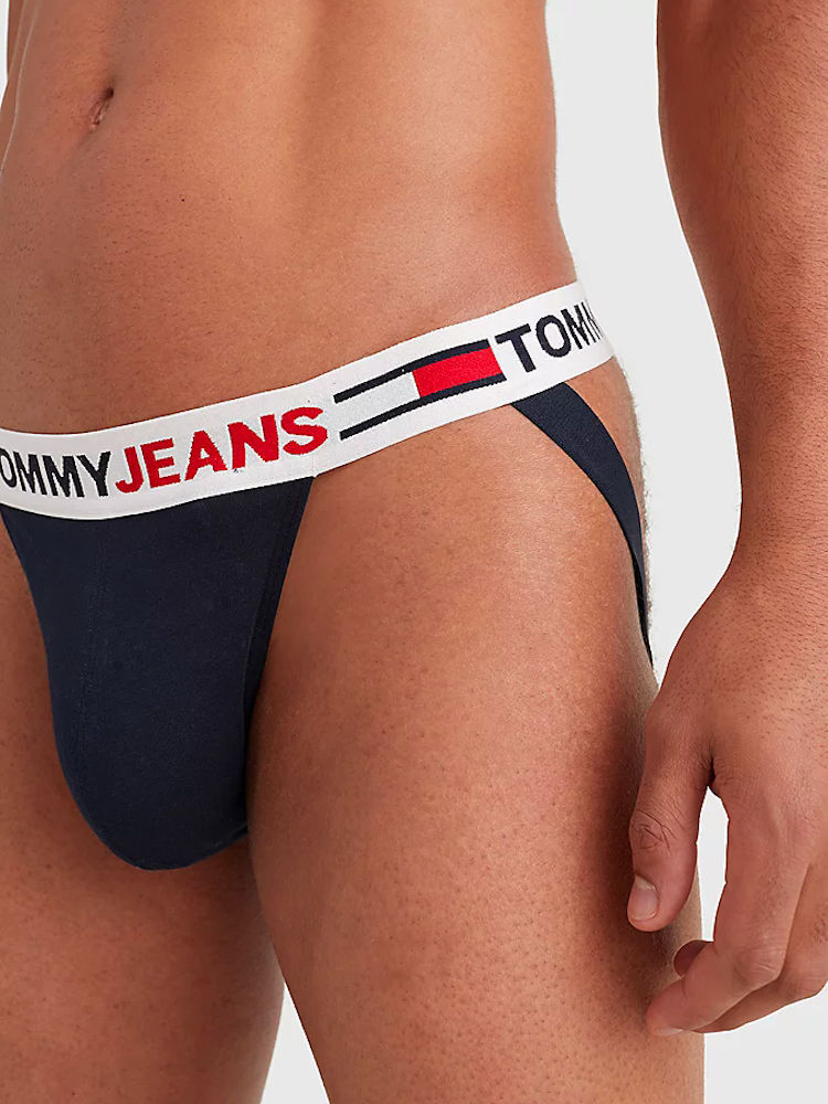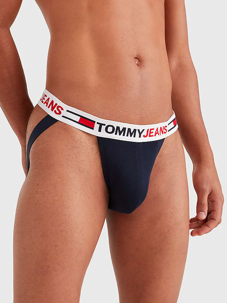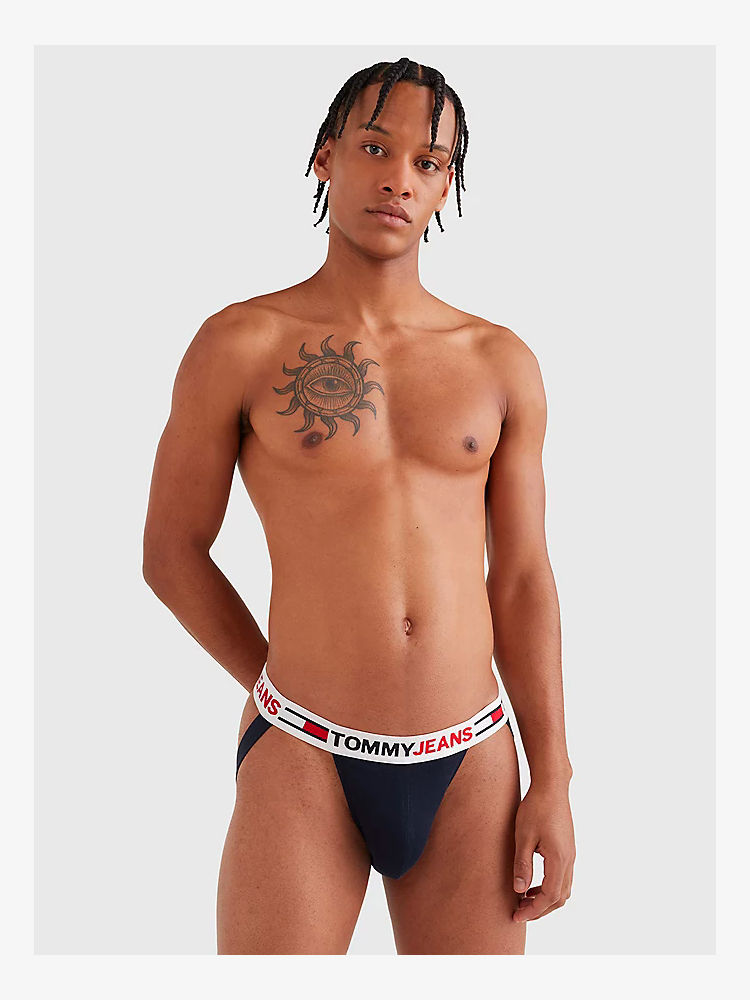 Warme kleuren en diepe tinten voor het nieuwe seizoen. Met deze unieke jockstrap uit de underwear collectie van Tommy Jeans creëer je eenvoudige een sportieve look. Deze katoenen jockstrap is uitgevoerd in een donkerblauw. Afgezet met brede witte elastische tailleband met Tommy Jeans logo voor comfort en witte straps voor een strakke look. Ontdek de mooiste Tommy Hilfiger ondergoed stijlen waarvan je al weet dat ze behalve comfortabel, ook cool zijn om te dragen. Deels gemaakt van gerecyclede katoen dus behalve goed voor jezelf, ook nog eens goed voor het milieu!