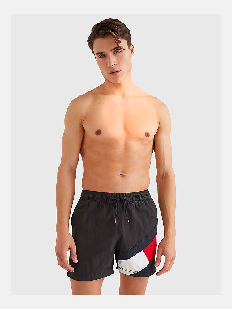 Tommy Hilfiger zwembroeken fans opgelet; deze medium lengte zwemshort neemt je mee op een stijlvolle reis. De Tommy Hilfiger zwemshort voor heren met slim fit pasvorm is gemaakt van een dunne, zachte en sneldrogende stof. Voorzien van een binnenvoering (slip) van fijne gaas kwaliteit en een klein steekzakje met sleutelring aan achterzijde. Uitgevoerd in zwart met color-blocking logo op linkerpijp. Een stoere en tijdloze zwemshort van Tommy Hilfiger swimwear waarmee je gegarandeerd in stijl het strand of zwembad kunt betreden. Afgezet met elastische tailleband met koordsluiting en steekzakken voor een relaxte fit.
