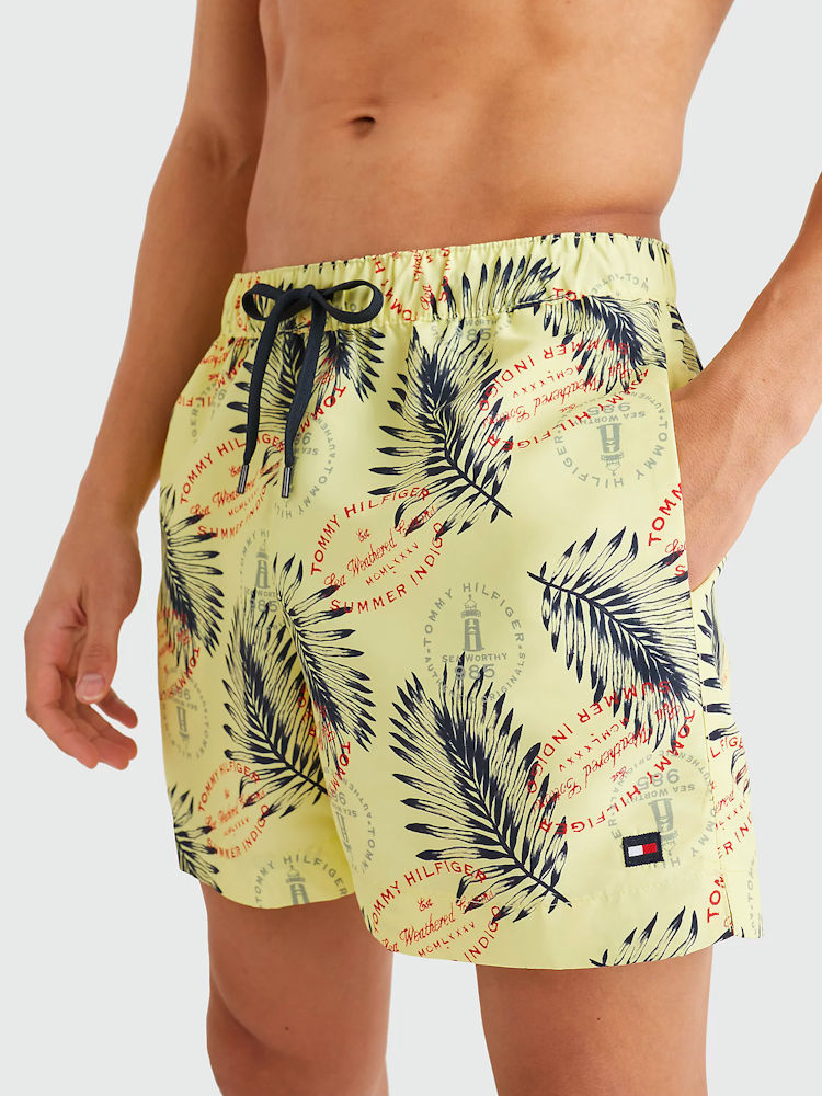 Tommy Hilfiger Medium Drawstring UM024790LJ zwemshort in geel met palmprint