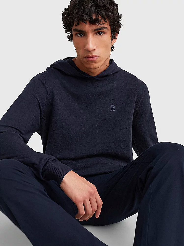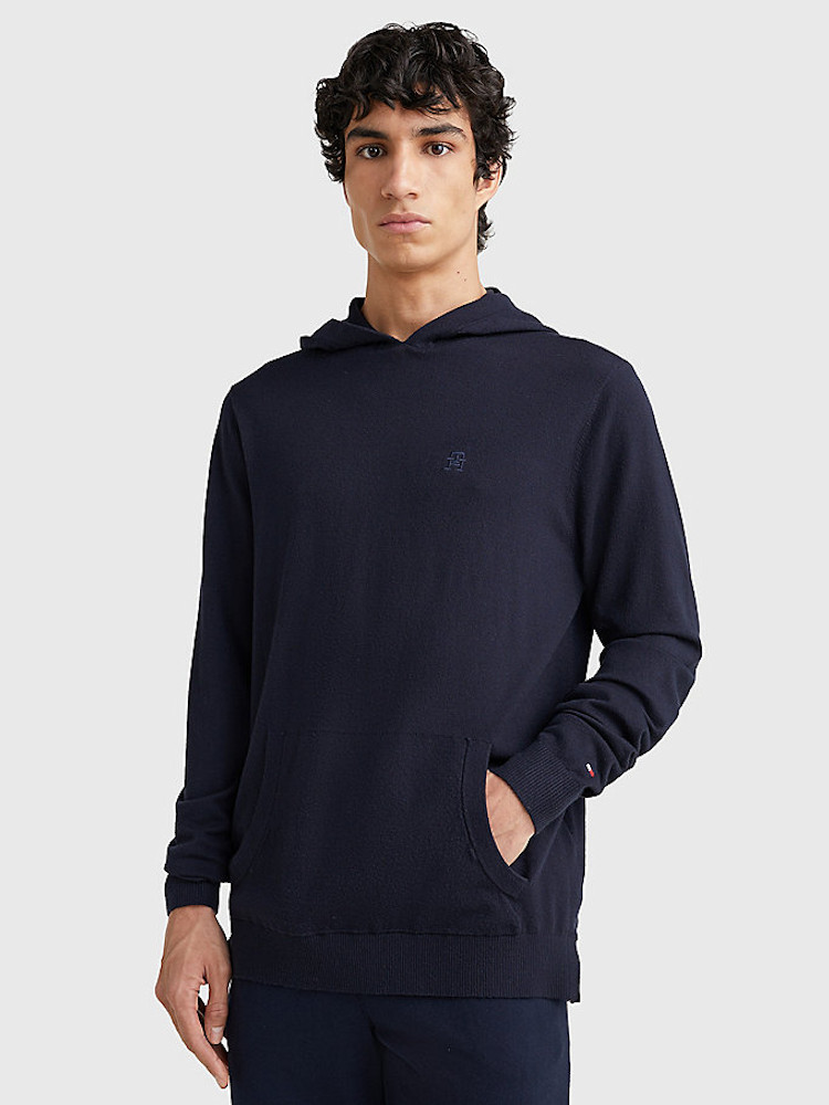 Tommy Hilfiger Monogram Hoodie UM02628DW5 capuchontrui van fijne gebreide viscosemix